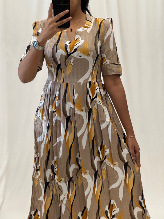 Pale Brown Floral Tissue Chanderi 3 Piece Set