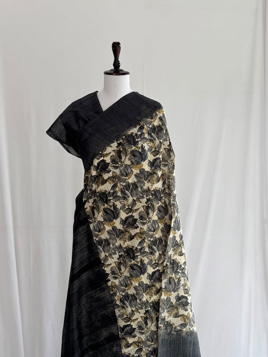 Black Olive with Pearl Border Tissue chanderi 3 Piece Set