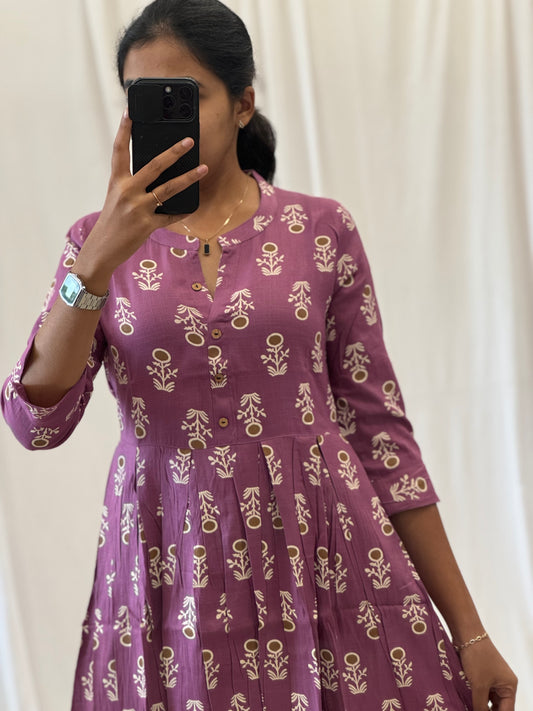 Geometric Printed Modal Chanderi Umbrella Kurti