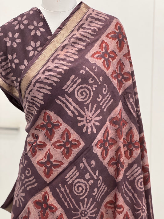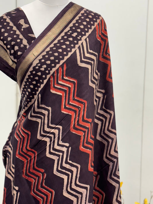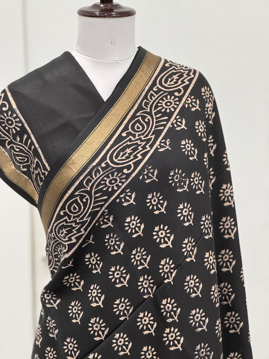 Pure Hand block printed Modal Silk Saree
