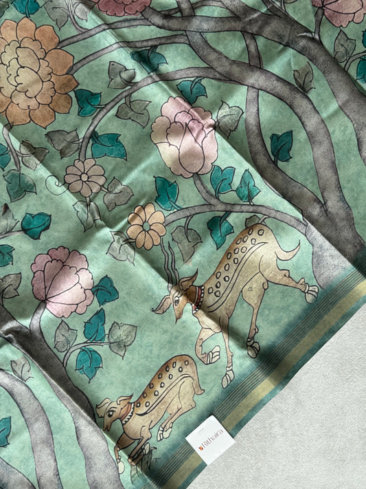 Pichwai Printed Semi Tusser Saree