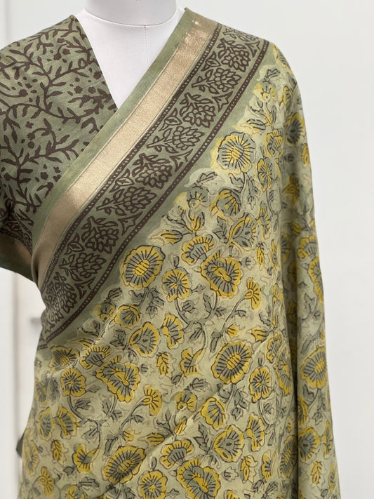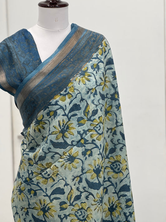 Pure Hand block printed Modal Silk Saree