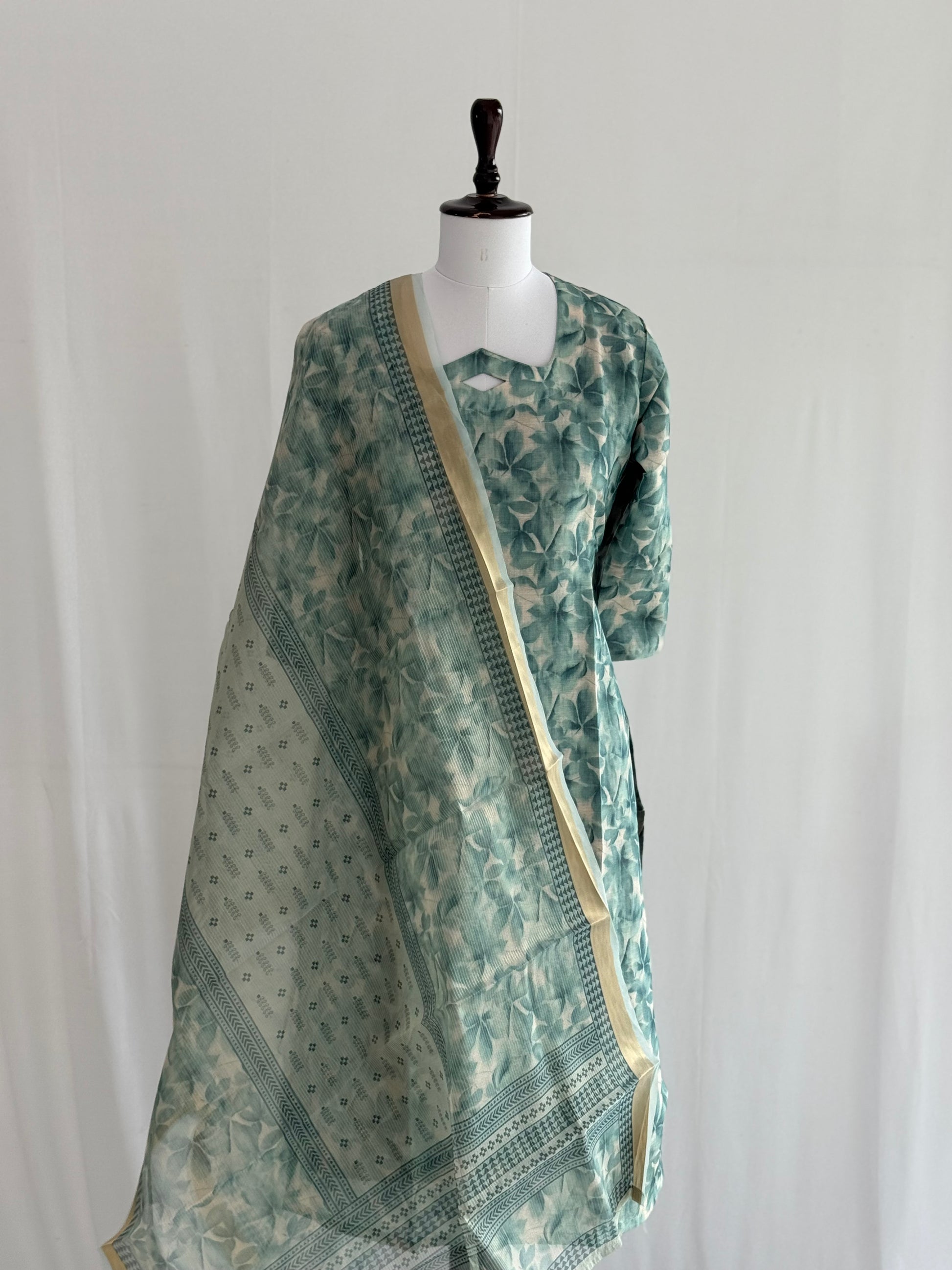 Blue Floral Soft Tissue Chanderi 3 Piece Set